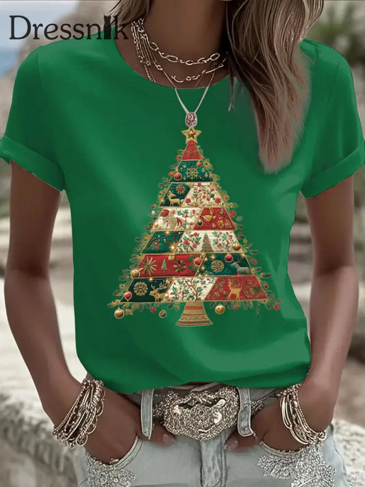Damen Weihnachts baum Print Freizeit T-Shirt