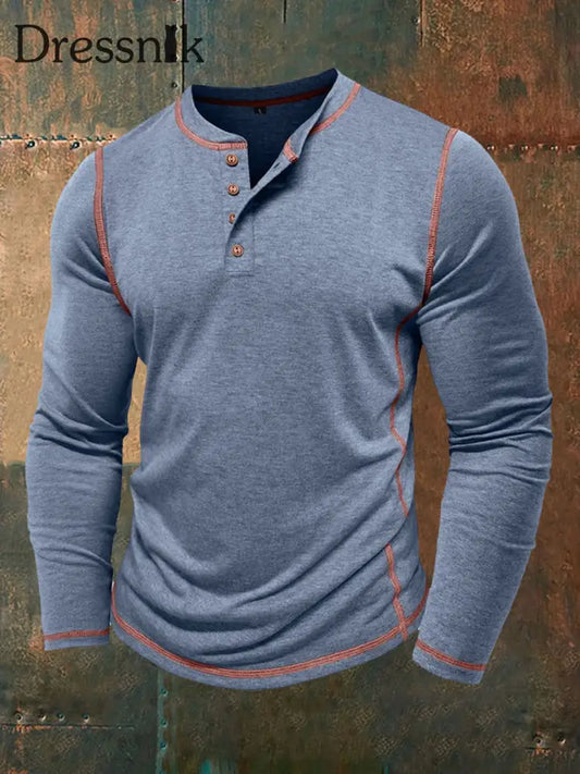 Herren einfarbig Lässiges Henley-Kragen-T-Shirt