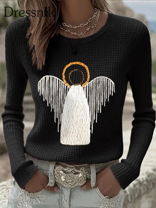 Frauen Weihnachts baum Print Waffel T-Shirt