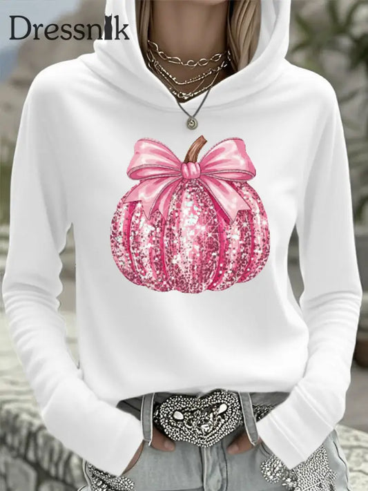 Frauen Rosa Kürbis und Band Strass Kunst T-Shirt