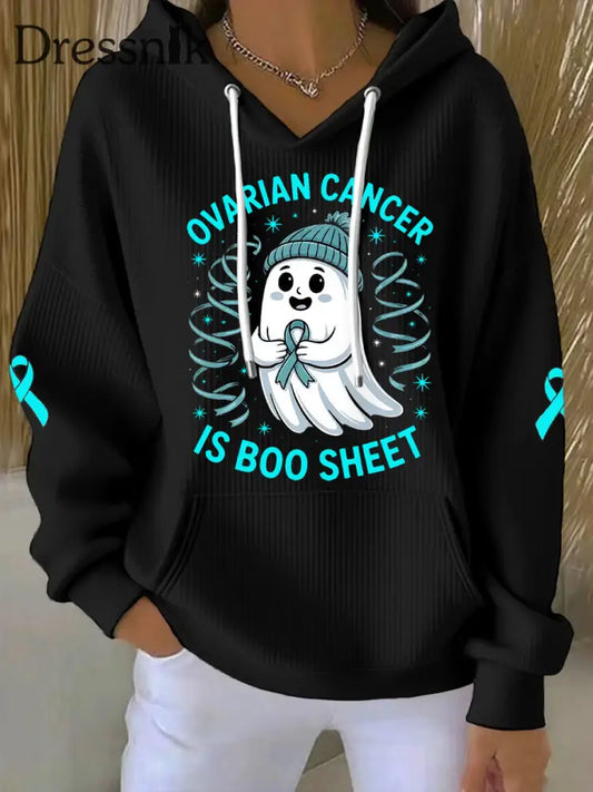 Frauen Eierstock krebs ist Boo Sheet Halloween Ghost Teal Ribbon Eierstock krebs Bewusstsein Langarm T-Shirt