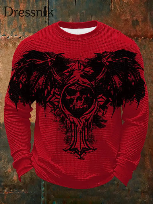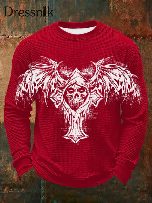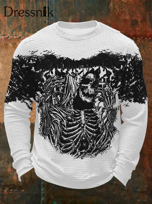 Herren Vintage Schädel Waffel Langarm T-Shirt