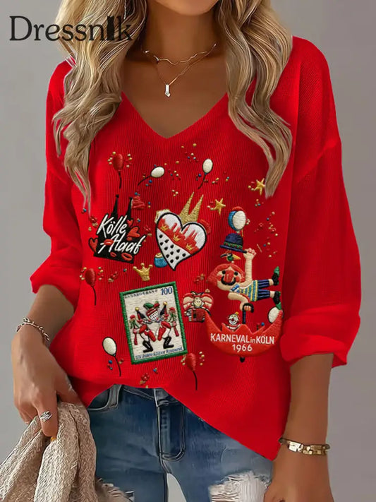 Damen Kölner Karneval V-Ausschnitt gerippt Top