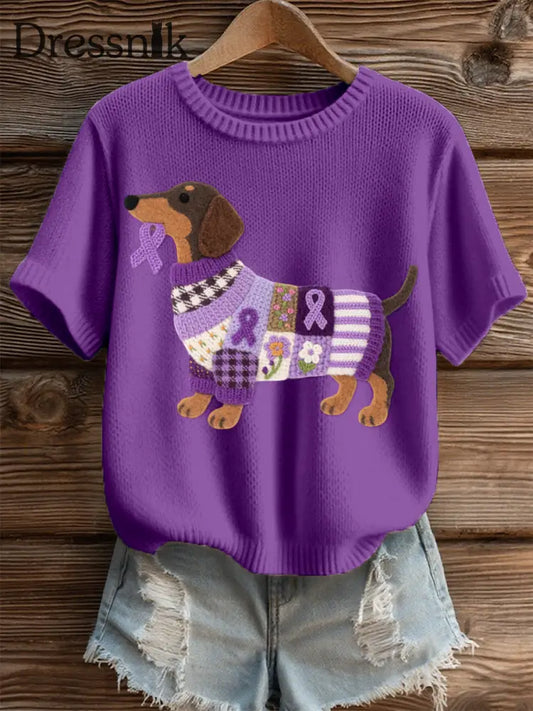 Damen Lila Flora Kunstdruck V-Ausschnitt Kleid