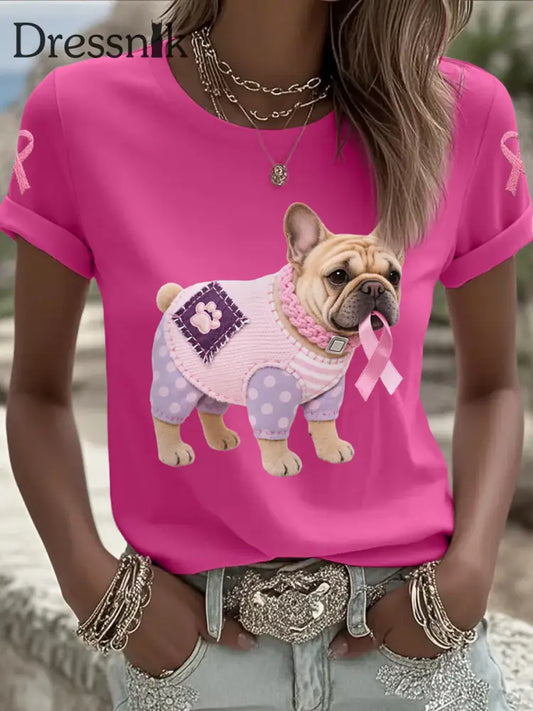 Frauen niedliches Corgi Muster Filz Kunst T-Shirt