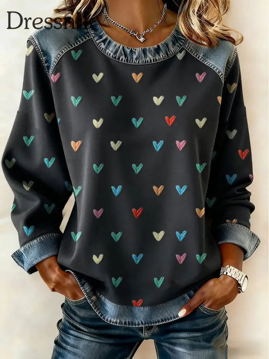Damen-Weihnachtsdruck-Oberteil mit Rüschen kragen
