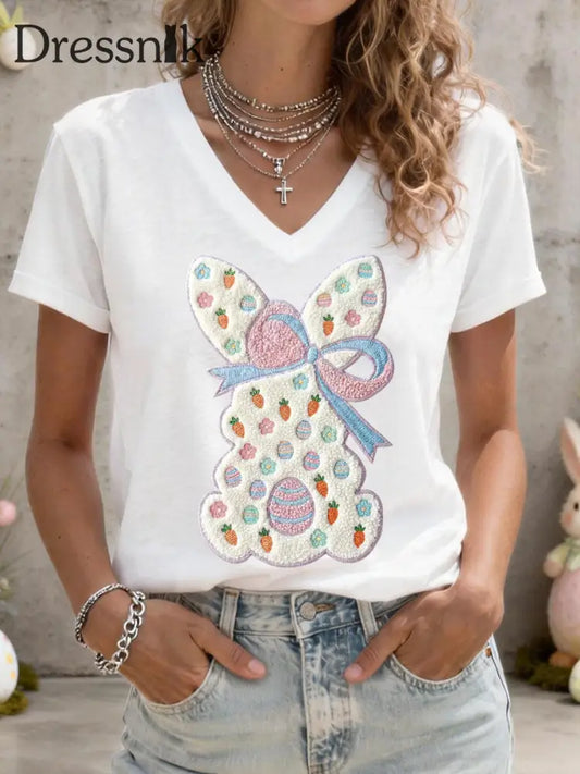 Frauen Kaninchen Kunstdruck Casual T-Shirt