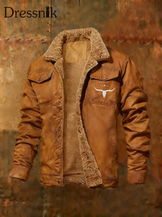 Herren Hoodie im Western-Stil mit Plüsch kragen