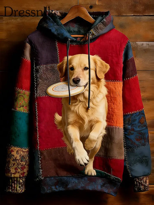 Damen Hund Kaffee Kunst Denim Patchwork Top