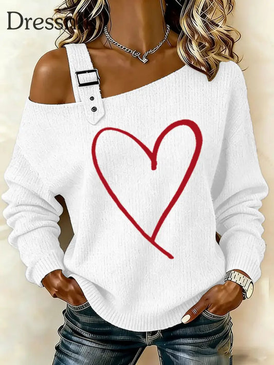 Frauen Valentinstag Kunstdruck Langarm Top