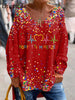 Bedrucktes V-Ausschnitt Revers knopf Vintage Lässiges Langarm-Shirt