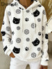 Beiläufiger Flanell-Hoodie mit niedlichem Katzen-Kunstdruck für Damen