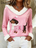 Damen Filz Kunst Dackel Muster pelzigen Top
