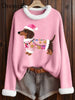Damen Filzkunst Weihnachts Dackel Muster Gemütliches Top