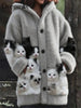 Damen Flanell niedliche Katzen-Print-Mäntel