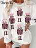Damen Frohe Weihnachts druck Geripptes Rundhals-Sweatshirt