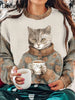 Damen Katze bedrucktes regelmäßiges Sweatshirt