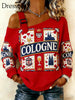 Damen Kölner Karneval Print lässig schulter freies Sweatshirt