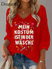 Damen Kölner Karnevals druck Lässiges V-Ausschnitt Langarm-Top
