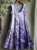 Damen Lila Flora Kunstdruck V-Ausschnitt Kleid