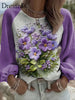 Damen Lila Flora Kunstdruck V-Ausschnitt Kleid