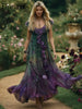 Damen-Maxi kleid mit Blumen besticktes, kontrast farbenes Leinen kleid