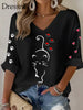 Damen niedliche Katze Print Katze Mama Katze Liebhaber lässig lang ärmel iges T-Shirt