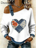 Damen Retro Floral Heart Patchwork Print lässig schulter freies Sweatshirt