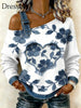 Damen Retro Floral Heart Patchwork Print lässig schulter freies Sweatshirt