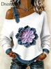 Damen Retro Floral Patchwork Print lässig schulter freies Sweatshirt