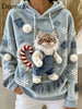 Damen Retro Tier Kunst Print Komfortables Flanell Kapuzen Sweatshirt