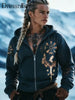 Damen Retro Viking Raven Rune Baum des Lebens Kunst Freizeit Reiß verschluss Jacke
