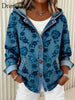 Damen Vintage Blumenmuster Patchwork Kunst Kapuzen strickjacke