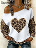 Damen Vintage Floral Heart Patchwork Print lässig schulter freies Sweatshirt