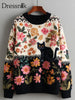 Damen Vintage Floral Kitten Kunstdruck Pullover