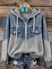 Damen Vintage Print Patchwork Kapuzen pullover mit Reiß verschluss
