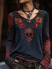 Damen Vintage Rose Skull Heißer Diamant V-Ausschnitt Langarm T-Shirt