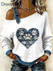 Damen-Vintage-Sweatshirt mit Herz-und Hunde-Pfoten druck lässig schulter frei