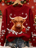 Damen Vintage Weihnachts-Highland-Rinder bedrucktes Sweatshirt