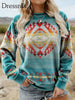 Damen Vintage Western Ethnic Azteken Muster Casual Flanell Sweatshirt