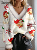 Damen-Weihnachts mann bedrucktes Vlies-Gefüge mit V-Ausschnitt