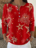 Damen-Weihnachts pullover mit rotem, lässiger Henley-Ausschnitt