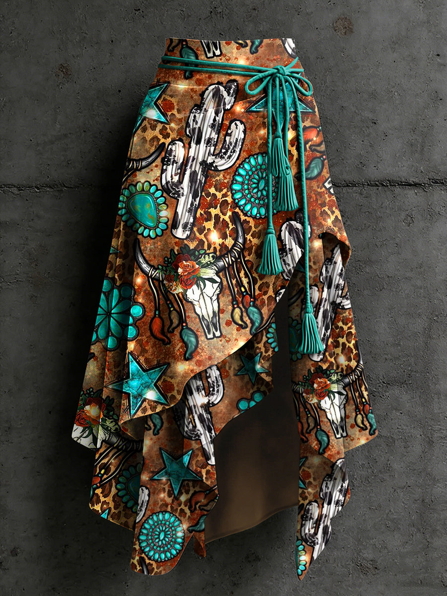 Damen-Western-Kunst bedruckter unregelmäßiger Rock