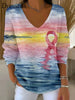 Frauen Brustkrebs Bewusstsein Rosa Band V-Ausschnitt Tops