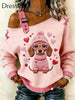 Frauen Brustkrebs Tier Dackel Bedruckt Ein Schulter Hosenträger Lässiger Pullover