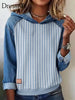 Frauen Gestreiftes Muster Patchwork Kunst Hoodie