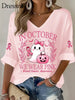Frauen im Oktober tragen wir rosa bedrucktes lässiges T-Shirt