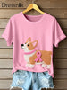 Frauen niedliches Corgi Muster Filz Kunst T-Shirt