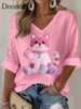 Frauen Rosa Katze Rosa Band Brustkrebs Sensi bilisierung Unterstützung Langarm T-Shirt