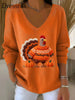 Frauen Thanksgiving Truthahn Langarm T-Shirt mit V-Ausschnitt